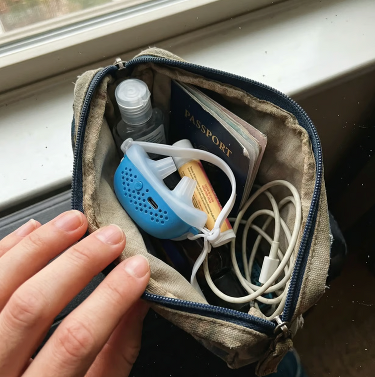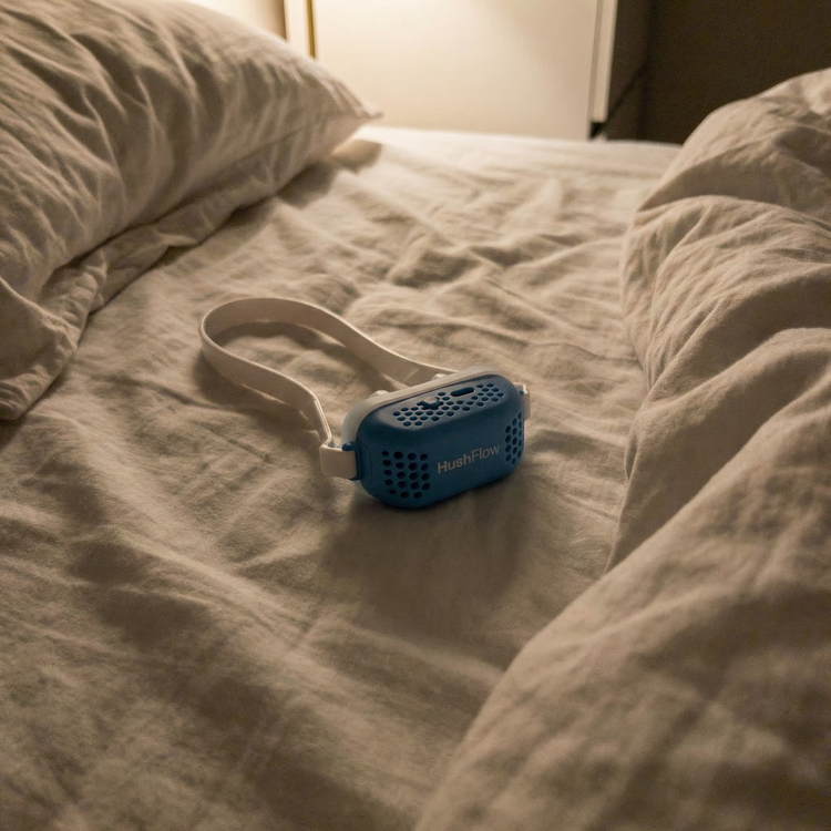 HushFlow is a small, travel-friendly airflow support device that’s easy to fit, easy to adjust, and made for real life—at home or on the go.