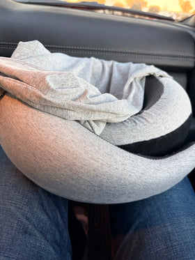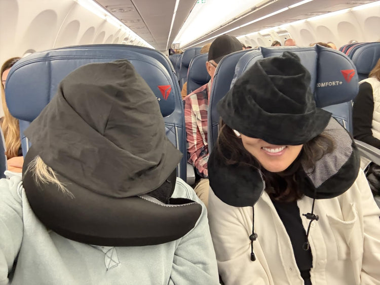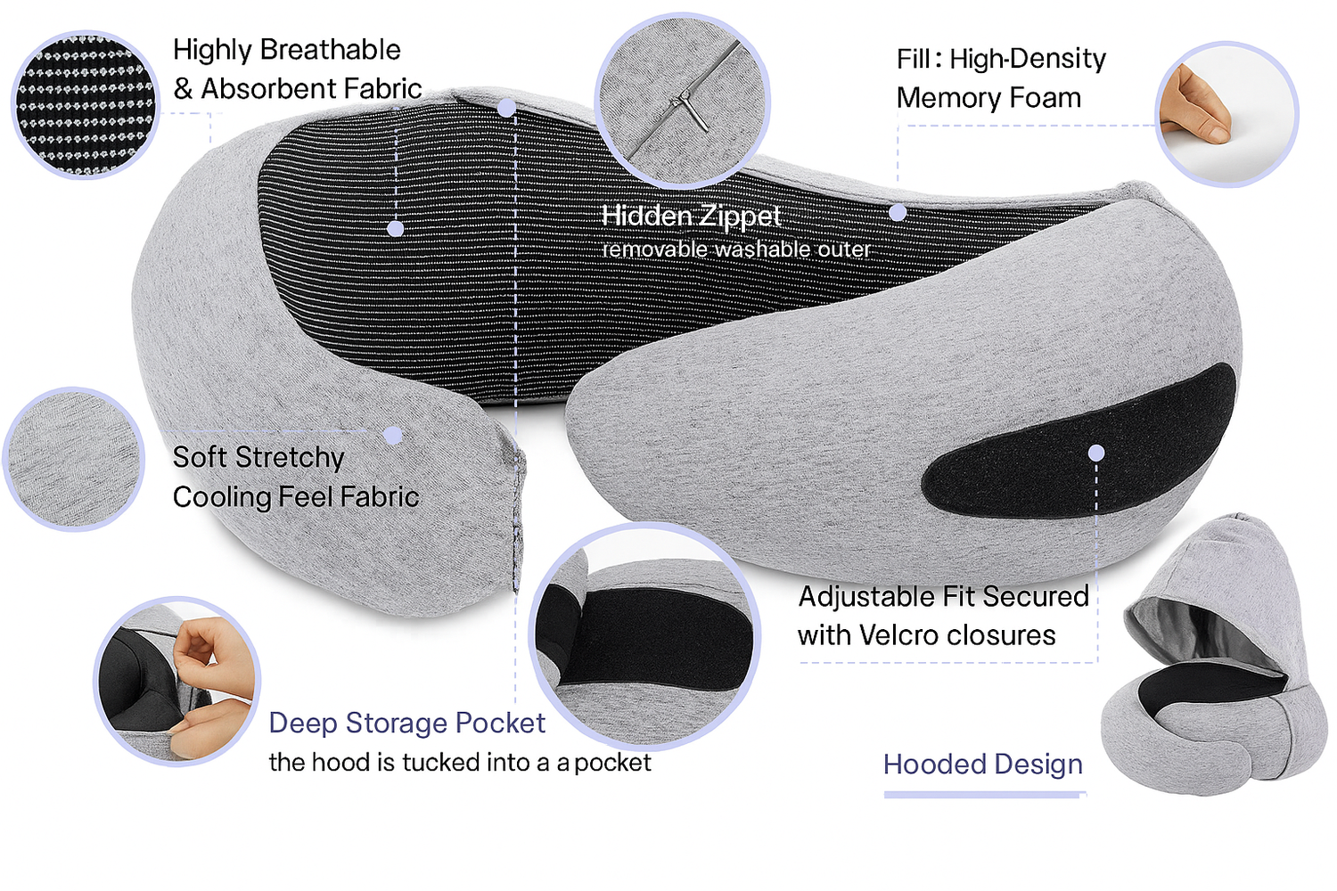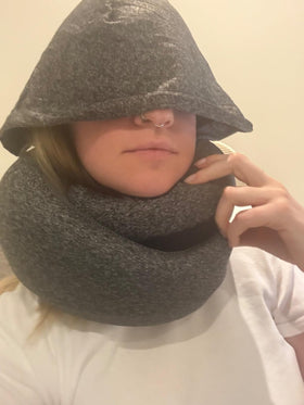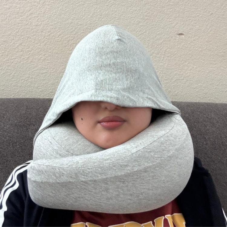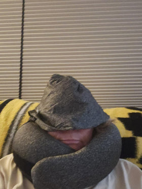 Got this for my hubby for his flight and he’s weirdly excited to use it. He tested it on the sofa and was out in minutes—the hood blocks glare and softens the noise, and the 360° cradle stops his head from dropping. He always hates the cold A/C on planes, so the hood over his eyes/temples is perfect